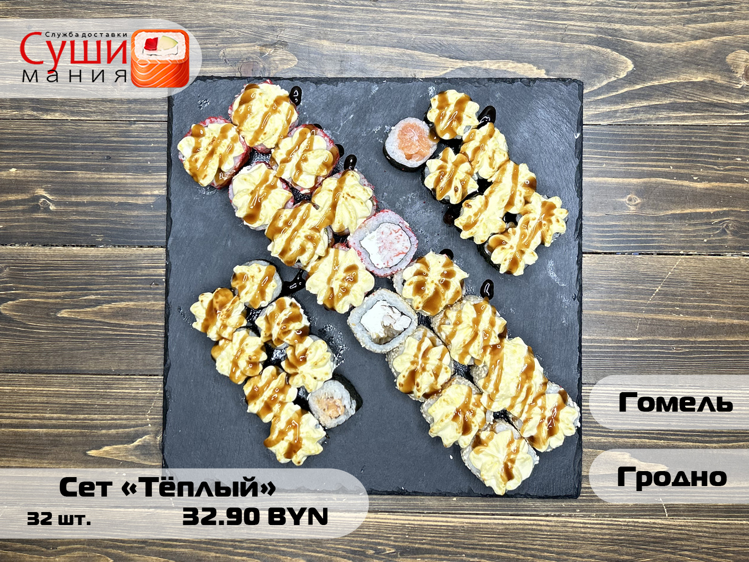 Запеченная спайси мидия (мидии, спайси соус, рис, нори)